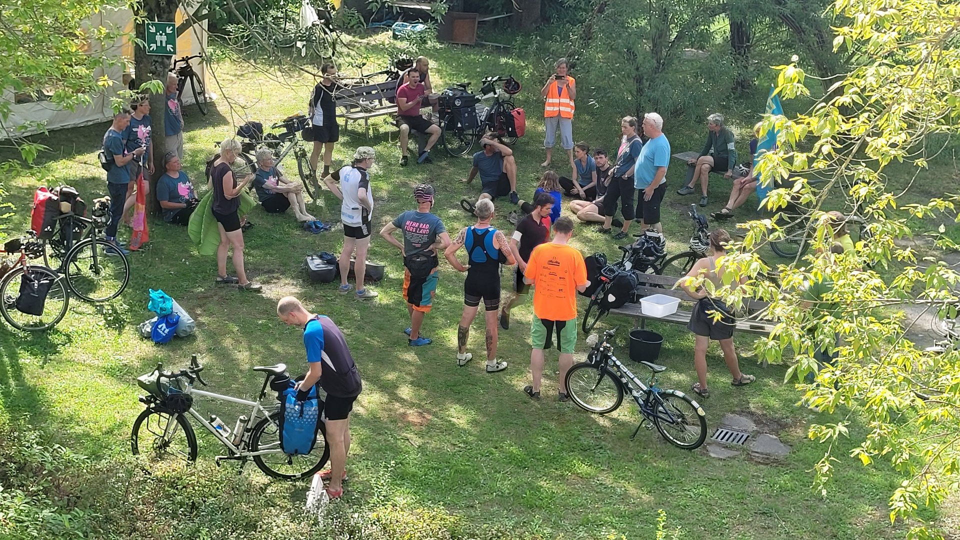 Bereits im Vorfeld der Tour hatte sich die Vereinigung Changing Cities aus Berlin mit den Kommunen in Verbindung gesetzt, die als Etappenziele infrage kommen könnten. In Dresden stießen sie bei uns auf offene Türen. Unsere Gäste wurden herzlich empfangen und hatten die Möglichkeit, auf unserem Gelände zu übernachten und den Aula-Anbau zu nutzen. Darüber hinaus konnten wir Ersatzteile für Fahrräder, die unterwegs bestellt wurden, entgegennehmen, sodass wir schnelle Reparaturen vor Ort anbieten konnten.