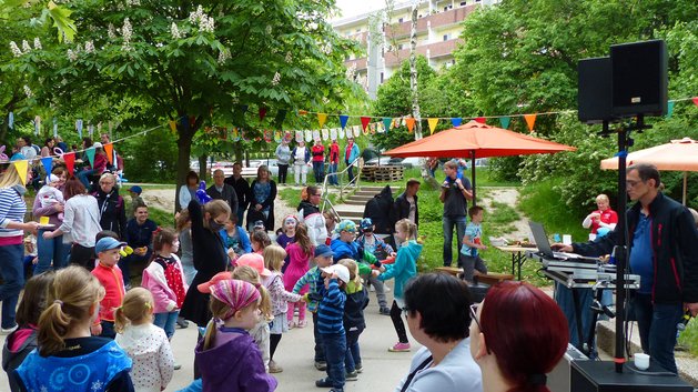 Familienfest im Frühjahr: an einem Samstagnachmittag im Mai wird in unserem Garten groß gefeiert. Gemeinsam mit dem Elternrat werden die verschiedenen Aktivitäten geplant und vorbereitet. Eltern backen Kuchen und bringen sie für das Buffet mit. Bastelstände, Sport- und Spielangebote, Kinderschminken, Flohmarkt, Zuckerwatte und Kinderdisco laden zu einem bunten Treiben ein. Am späten Nachmittag wird auch noch gegrillt.