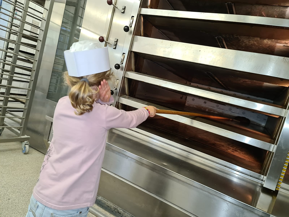 Die Kindergartenkinder durften sogar versuchen mit dem Brotschieber ein Brot aus dem Ofen zu holen. Das war gar nicht so einfach und machte dennoch sehr viel Spaß. Ein tolles Erlebnis.