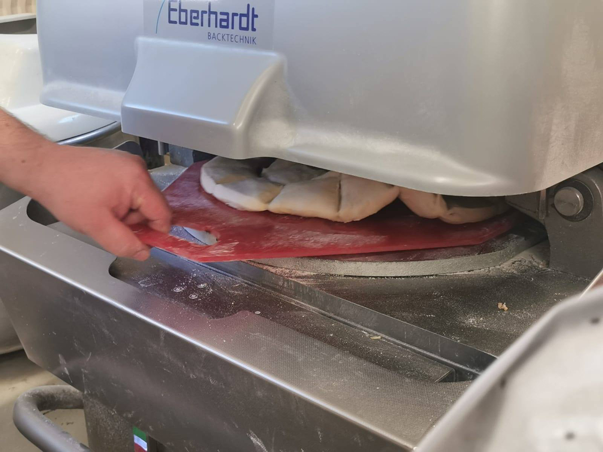Der Bäckermeister zeigte den Kindern die Backstube und erklärte was zu beachten sei.